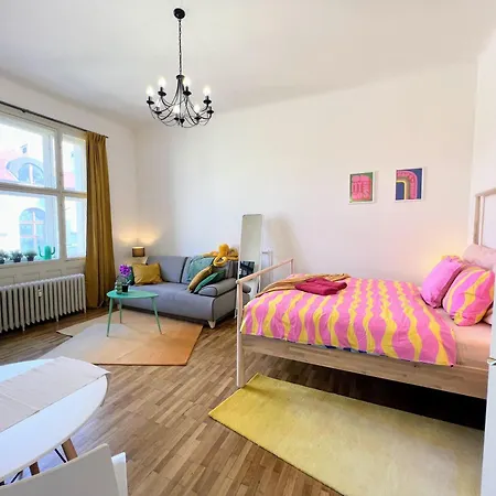 L’alloggio offre una cucina che include una lavastoviglie e un forno. La stazione della metropolitana Staroměstská è a soli 5 minuti a piedi, ciò offre un collegamento con zone popolari di Praga.